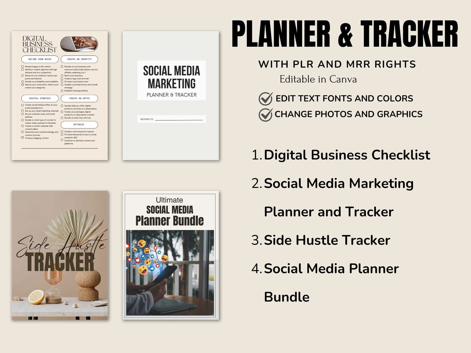 Struggling to stay on top of your business, social media, or side hustle? This fully editable Planner & Tracker Bundle helps you plan, track, and grow with ease!